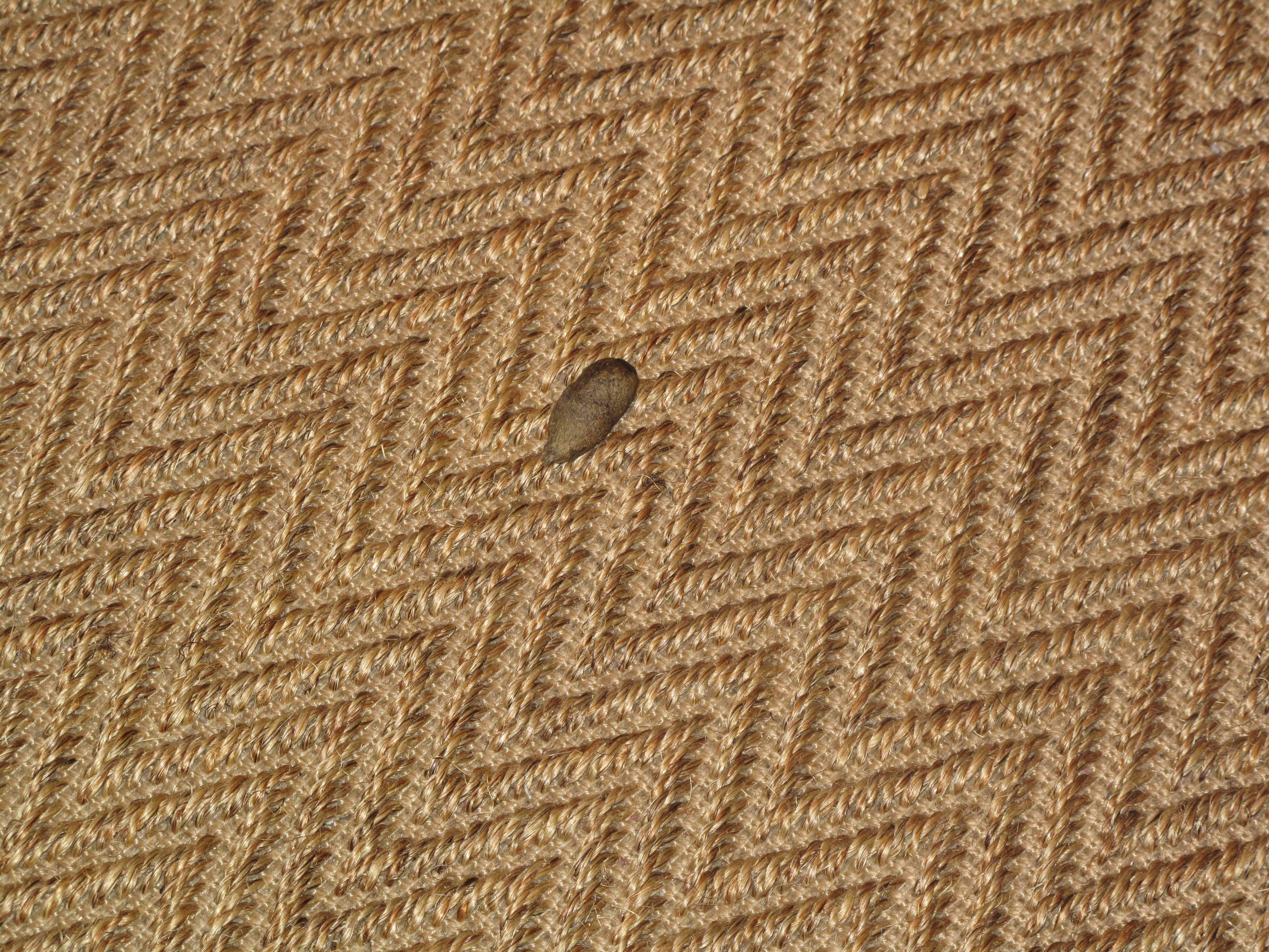 Honey badger’s got a whole lot of nothing in the feelings department. But sometimes karma comes back to bite me on my fluffy omnivorous butt. For when I arose the other day, what should greet my tired eyes? A prezzie left by Muffalo on the Pier I rattan mat in my office, which cost $20 and provides a nice textured contrast to the smooth floorboards. As the quick-minded recipient of this bodily offering, I instantly photographed it for your viewing pleasure.