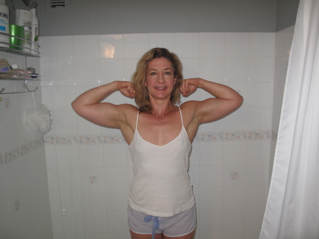 More protein and food intake equals more muscle. Pre-shower photo shoot three months later. Location: Man bathroom in my condo, Edmonton, Alberta [Aside: lady bathroom is a little nicer]