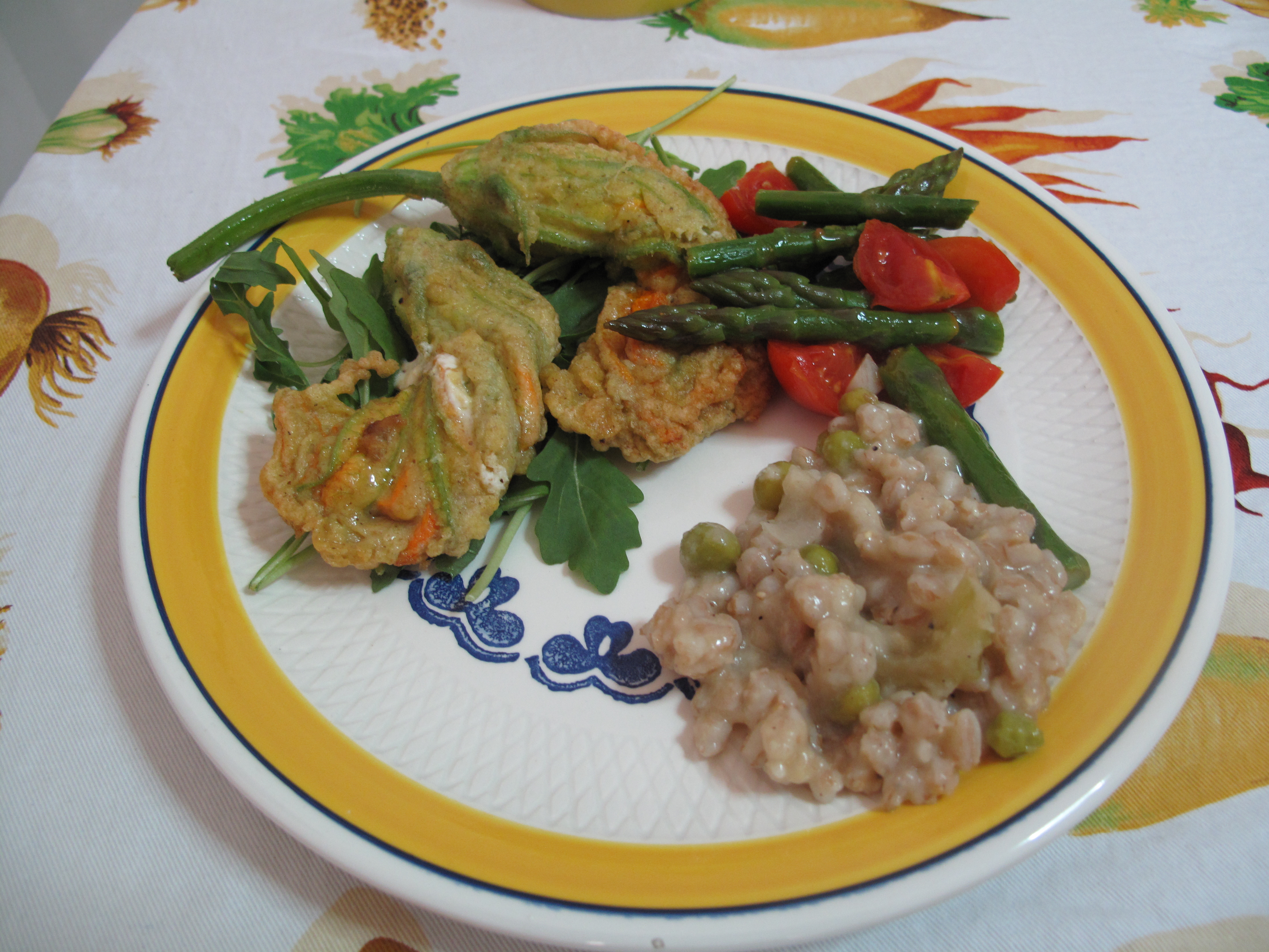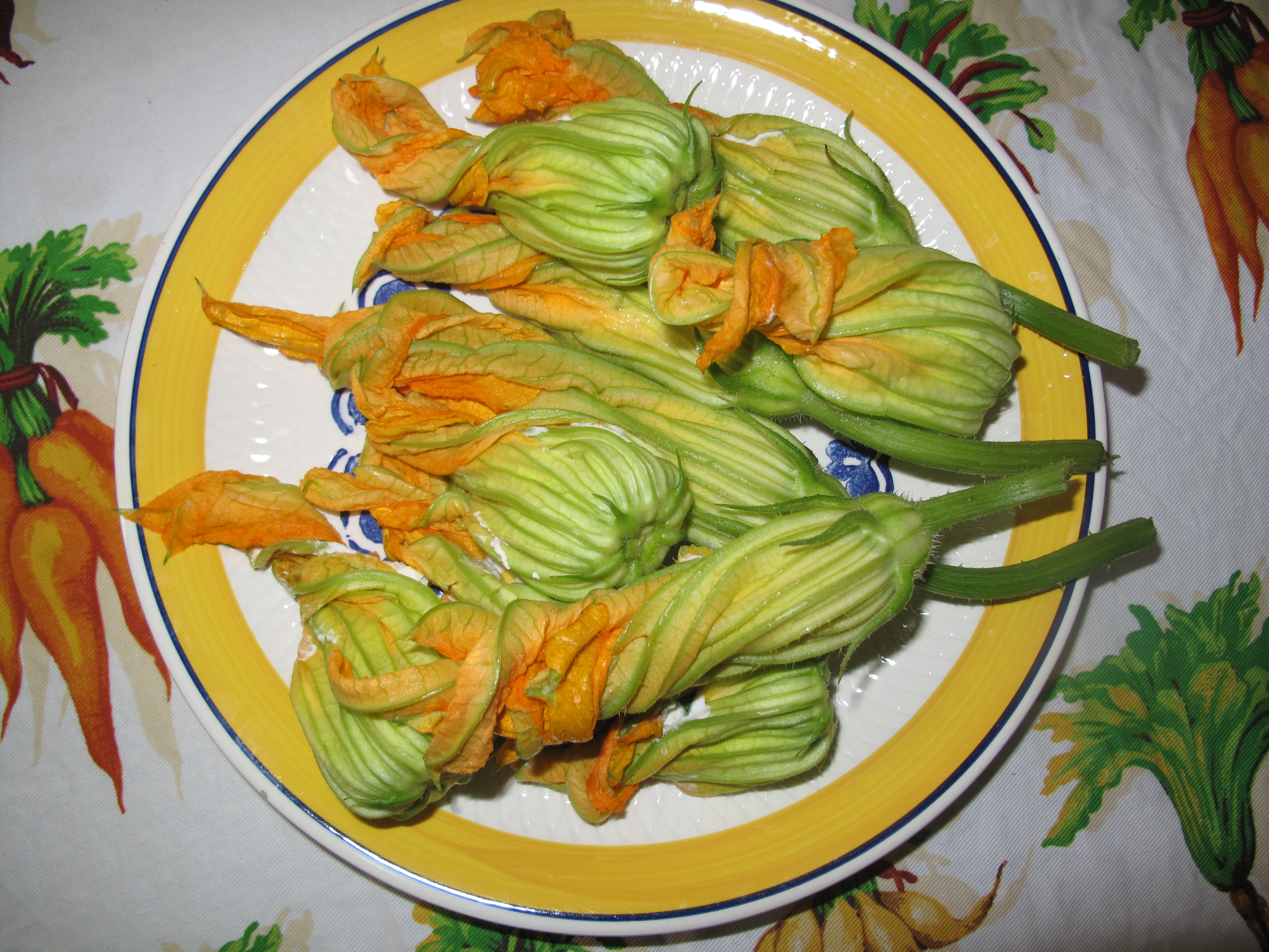 Whenever I am visiting another country, I make an effort to learn about the local ingredients and traditional recipes. While in Cortona, I have made soup from farrow, an ancient grain that is like barley but with an earthier taste. After noticing bright orange flowers in all the shops the other day, I asked one vendor how to cook them, receiving a list of instructions in Italian, which I more or less understood. After opening the flowers pictured below and checking them for bugs, I added a spoonful of ricotta cheese mixed with fresh chopped basil to each one. Then I twisted the flowers shut before dipping them in a vague mixture of ‘some egg and flour.’ Yesterday I lightly fried the coated flowers for my current guests, MW and DO, to enjoy for breakfast. Feast your sinful greedy eyes on the pictures below, cretini!