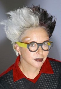 Orlan with her permanent horns, perfecting decades ago the nerd look that is currently popular.