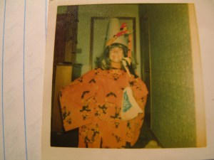 Here I am as a happy grade fiver, dreaming about the magnificent witch identity that I would soon create from variously assembled crap, including an old bottle of green food colouring found in the kitchen “junk drawer.” It was only partly dried up. “Oh,” I sang to myself while skipping home from school, “I will surely win the prize at the Hallowe’en party this year!”