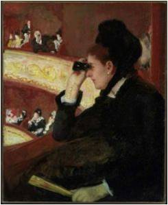 How are vision, gender, and class portrayed in this painting by Mary Cassatt, Woman in Black at the Opera, 1879? Talk amongst yourselves.