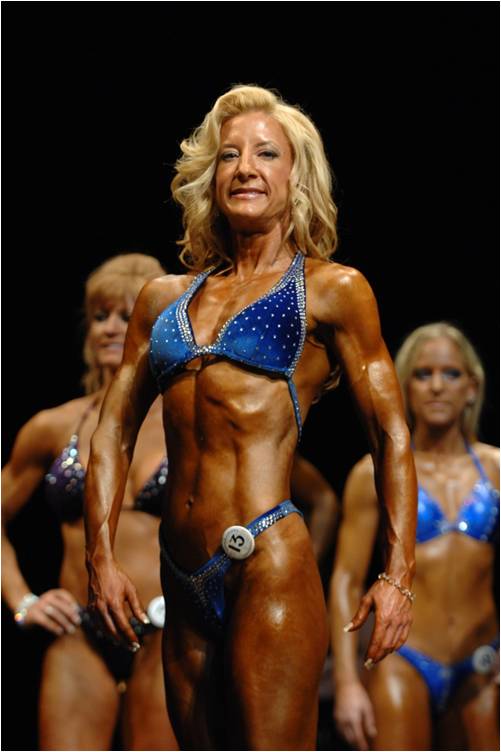 Adopting my relaxed professor stance, I begin. “Today I would like us to think about the politics of looking and being looked at. The visual domain is rife with power dynamics, within which we necessarily find our place and exist. We need to be looked at. Yet the look of the other can also be limiting or disempowering, especially when it transforms us from subjects into objects. Here is a picture of me on stage during a bodybuilding/figure competition last year. What do you think? Am I a subject or an object here? What is going on?”
