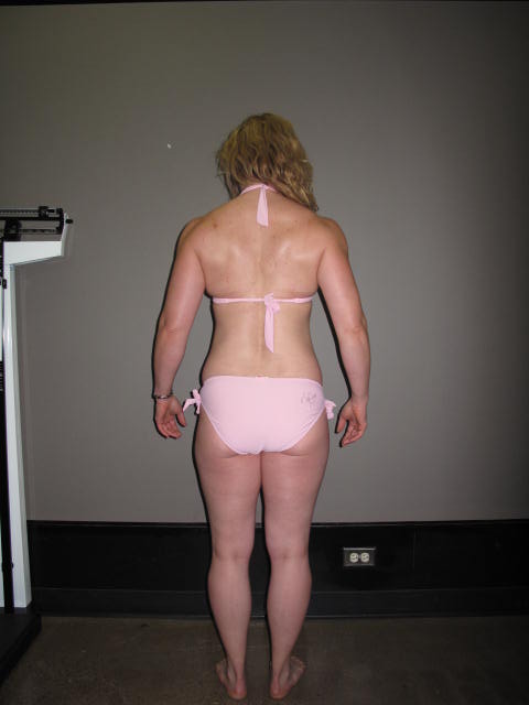 I did not become a future figure competitor until October 18, 2010. That is when I entered a small, dimly-lit consultation room with my current personal trainer, Audrey Shepherd, and removed my workout pants and t-shirt to reveal a pink 1950s bathing suit. Standing awkwardly against a cold wall, I handed Audrey my camera and she took pictures of me from the front, back, and both sides. I did not flex, pose, or try to suck in my gut. I was not tanned or wearing make-up and my hair was not done. The resulting pictures are hardly flattering, and lack any contextual markers, except for the weigh scale beside me, a potentially ironic allusion to the fat-loss diet program I would start three months later. Although this photographic event was in many ways banal, it conferred my identity as someone in training for a bodybuilding/figure competition. I was transformed by disrobing and posing as a body both deserving of and desiring scrutiny. This photographic act was also a disciplinary exercise that positioned me as an object waiting to be compared and contrasted with other bodies, recalling art historian John Tagg’s arguments about nineteenth-century photography as a state apparatus that participated in producing regimes of truth able to hold citizens in place. By submitting to these ‘before’ photographs, I had opened my body to the application of rules and regulations, while requiring viewers to look at me in a judgmental way. At the same time, the pictures were made within an atmosphere of trust, initially viewed only by myself and Audrey, creating an intimate bond between us.