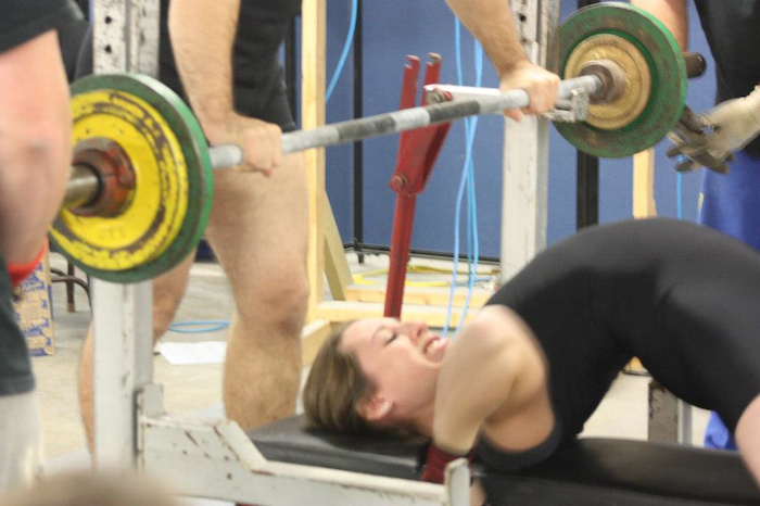 benchjaniswheeeeWhen you spend years embroiled in the concerns of the world of eating-disordered thinking—which I did, for roughly seven years of my life—you learn to judge the body’s image by certain standards. When you escape the worst of the ravages of that eating disorder and adopt new ways of assigning worth and beauty to the body, those standards are replaced. When you become passionately devoted to a strength sport in which your body’s shape and proportions at least partially determines your success as an athlete, you again revisit your ideals regarding desirable bodies. I have, at this point, accumulated layers of physical self-identification. For one group of people, one that includes the scores of “a body fit and toned, not too bulky”—coveting users of Pinterest, I am an “ideal”—I’m petite, trim, “cute.” For another group, the world of powerlifting, I’m in a minority—I’m in the second to lowest weight class that exists within the sport and my lift numbers will always be the warmup lift numbers for those in the higher classes. Lower weight class lifters such as myself are not the typified image of the sport, and we don’t tend to appear on the few magazine covers that are produced by powerlifting enthusiasts.