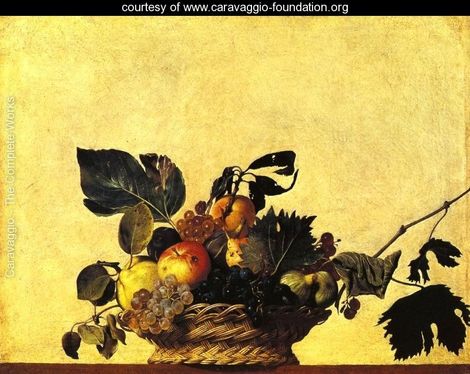 Not a good idea. Caravaggio, Basket of (tempting but rotten) Fruit, c.1599, 31 x 47 cm., Milan: Amborsiana.