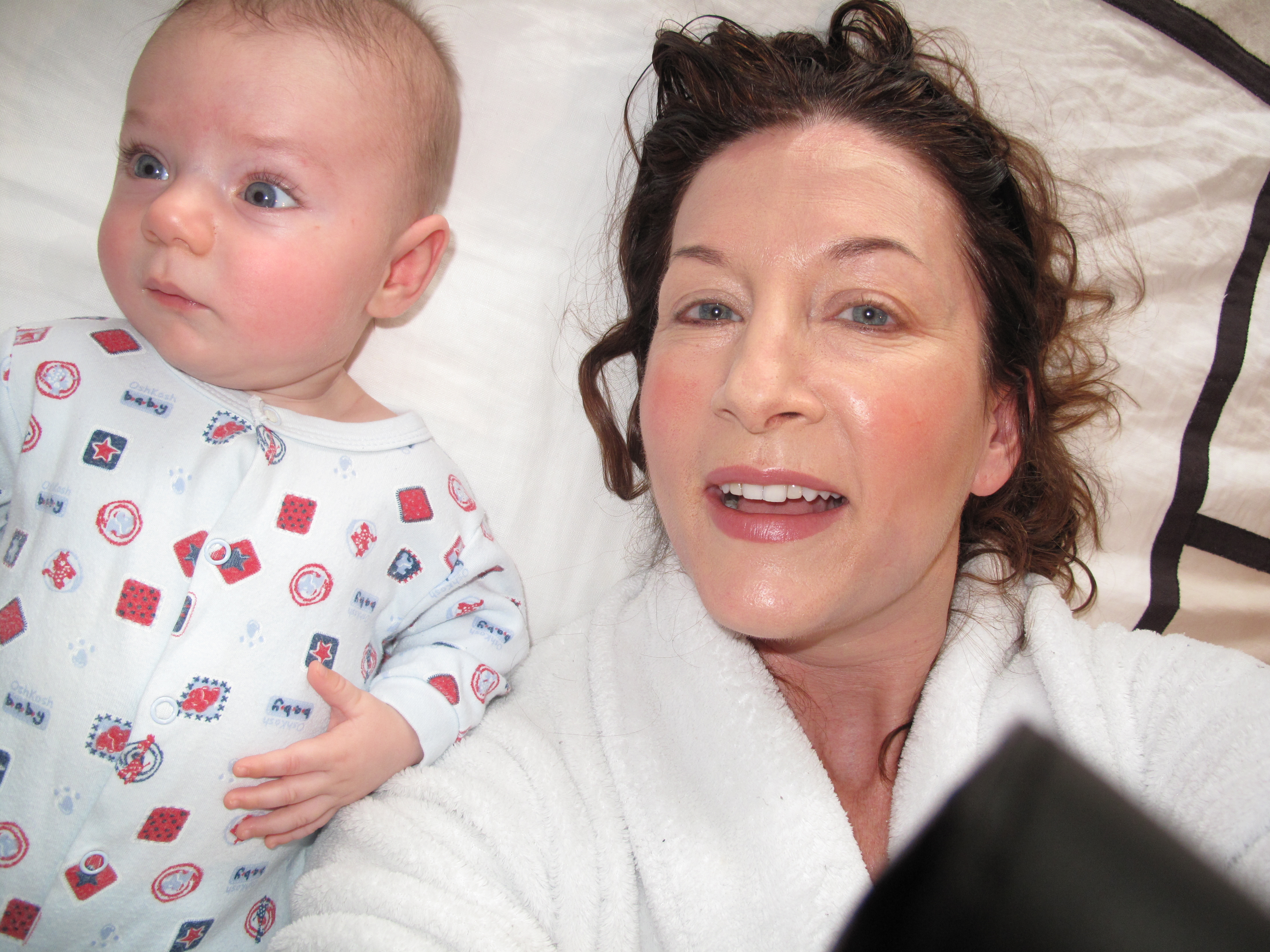 I don’t want to spend a lot of time categorizing or discussing these things, since they do in fact bore the living crap out of me: sleeping, getting drunk, and shopping. The last item is at the bottom of my barrel. I suspect that I am at odds with many on this matter, at least if the people on ‘Til Debt Do Us Part represent the norm. Much to my shock, I also care less about design elements than I thought I did. Just look at the attached image to see what has happened to my dining room. And last but not least, I now spend little time on my appearance. I happily head out for a walk with Sebastian, to the gym, or to the grocery store while looking like absolute garbage. Nothing could interest me less, as is evident in the “baby selfie” below. My lame effort to slap on some rouge before taking this photo backfired rather badly. Still don’t care.
