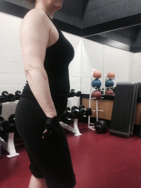 Another before photo. My stomach now pokes out at the top, is flatter in the middle, and bulges again at the bottom. I’m working on it!