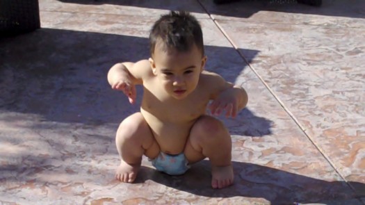 I squat down on a regular basis to interact with my son, and now find this pose quite restful, another return to a child-like body posture. Other movements that I perform on an almost daily basis include: lying on my stomach while stretching to reach underneath the couch for a block or toy; climbing up playground equipment and sliding down slides, again and again; bending down to pick things off the floor, or wipe up cereal with a cloth. I can confirm that moving like a child or because of a child can improve mobility and flexibility, though it can also kill your back and knees.