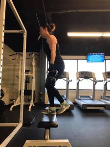 Fitness is easily lost. Take a short vacation or break and you will quickly feel your strength gains slip away. When I was pregnant I was super fit (I realize this in hindsight). I taught spin until I was 7 months pregnant, squatted, and trained continually. I never rested, I worked full time, and I worked out until the day before I went into the hospital to have my son. Fitbabe took a picture of me at the gym around this time and I looked like hell, but I dug up that photo and now you can see for yourself. Even so, after I had a c-section, I could not train for two full months. It was a slow road back to fitness, one that was not helped by ongoing sleep deprivation and the fact that I worked like a donkey every day, writing books and doing ridiculous amounts of laundry. When I started training again, I was pathetically weak. I was so pissed off. How unfair! Did those 25 years of working out count for nothing? I fondly remembered those heady days of training with PDDs after my figure competition. We would jump up on benches, do pull ups, and then take pictures of each other’s ripped backs. So awesome. … Those days were gone. They are gone.